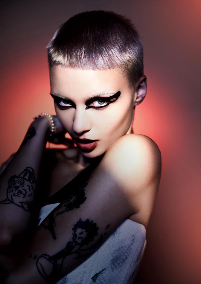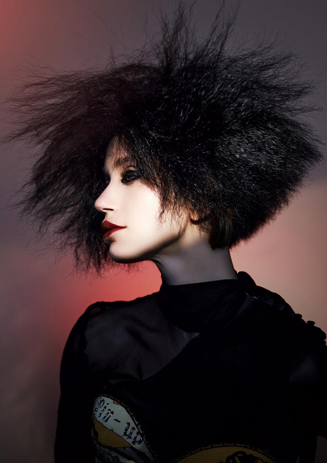 HAIR: SANRIZZ ARTISTIC TEAM. STYLING: JESSE SHARP. MAKEUP: MARI KUNO. PHOTOGRAPHER: ANDRES REYNAGA