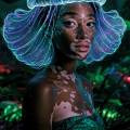 Ciało staje się płótnem odzwierciedlającym ocean, ze skórą ozdobioną błyskami imitującymi refleksy światła pod wodą. Makijaż gra punktami świetlnymi i przejrzystością, podkreślając rysy twarzy, zamiast je maskować. Efektem jest stylizacja przywodząca na myśl mityczne stworzenie, zawieszone między fantazją a morskimi głębinami. Warto podkreślić inkluzywność tej kolekcji. W projekcie wzięli udział modelowie z bielactwem i albinizmem, co nadało głos różnym typom urody i celebrowało pełną różnorodność ludzkiego piękna.