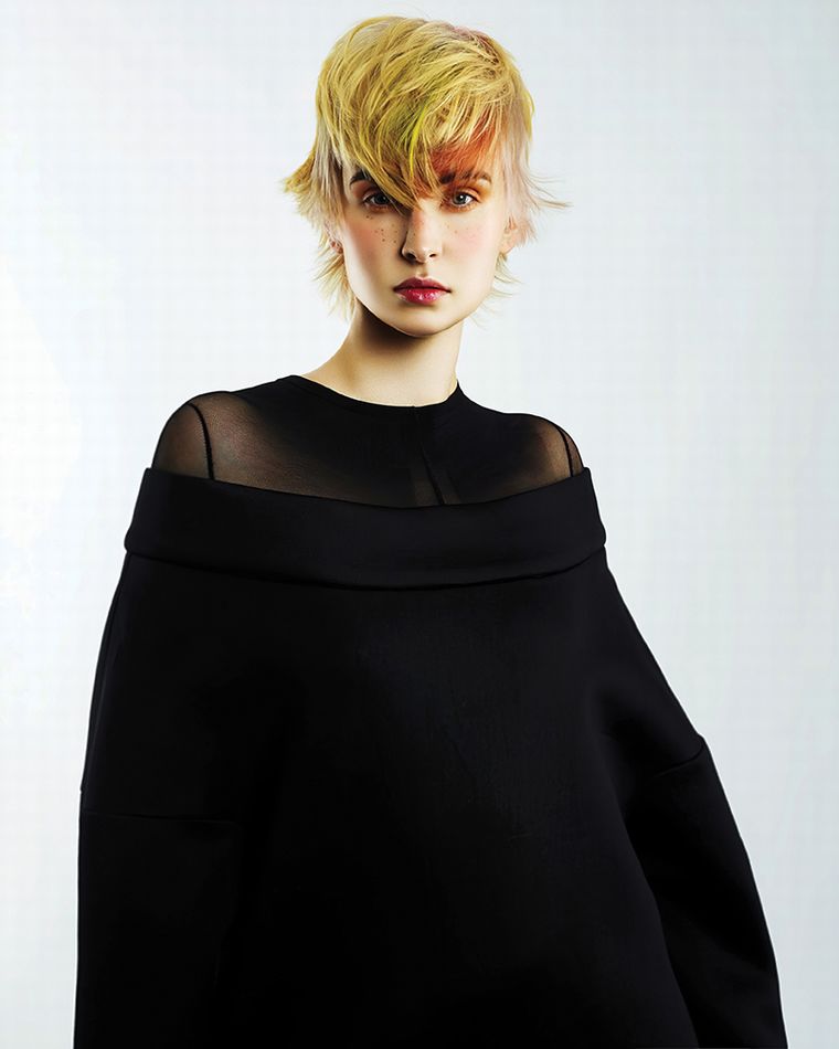 Hair by Isabelle Lachance Oblic urbain salon 1230 fleury est Montreal. Mentor: Anna Pacitto. Hair colour: Alexandre Melançon. Team: Cedric Drouin, Simon Da Costa, Christine Savard. Stylist: Florence O Durand assisted by Hugues Bergevin. Mua: Ekaterina. Models: Lily, Jade, Leila, Anne-Claire, Minnie.