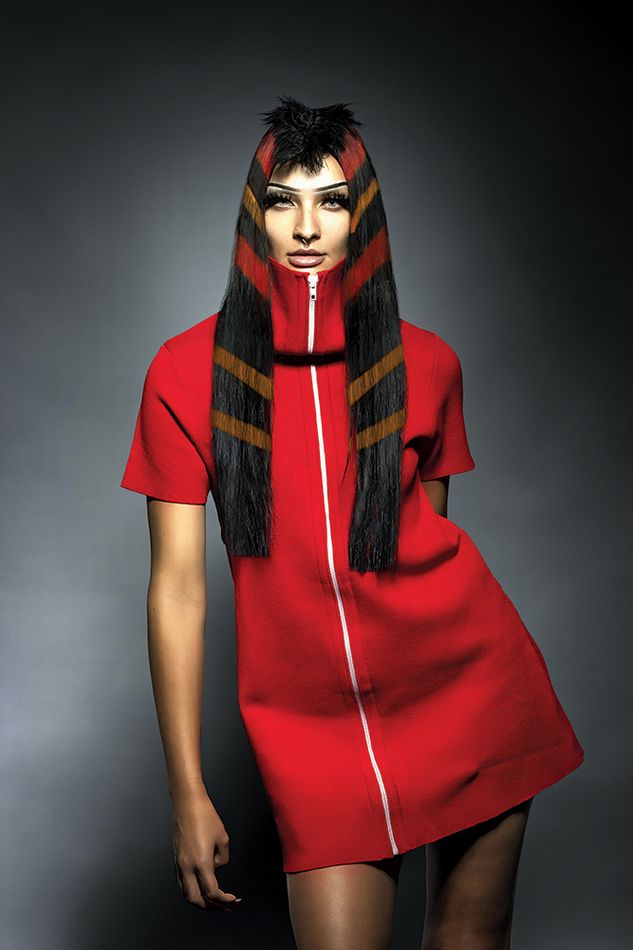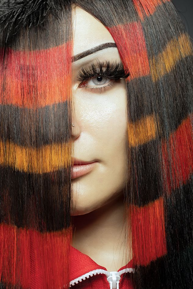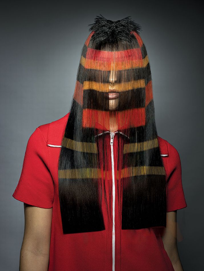 Kolekcja Chromatic Threads czerpie inspirację ze sztuki tekstylnej i graficznych kodów współczesnej mody. Włosy stają się żywym krosnem, na którym pigmenty splatają się w poziome i ukośne pasy, przywodząc na myśl tkaniny rzemieślnicze, geometryczne nadruki oraz wizualny język cyfrowych pikseli.