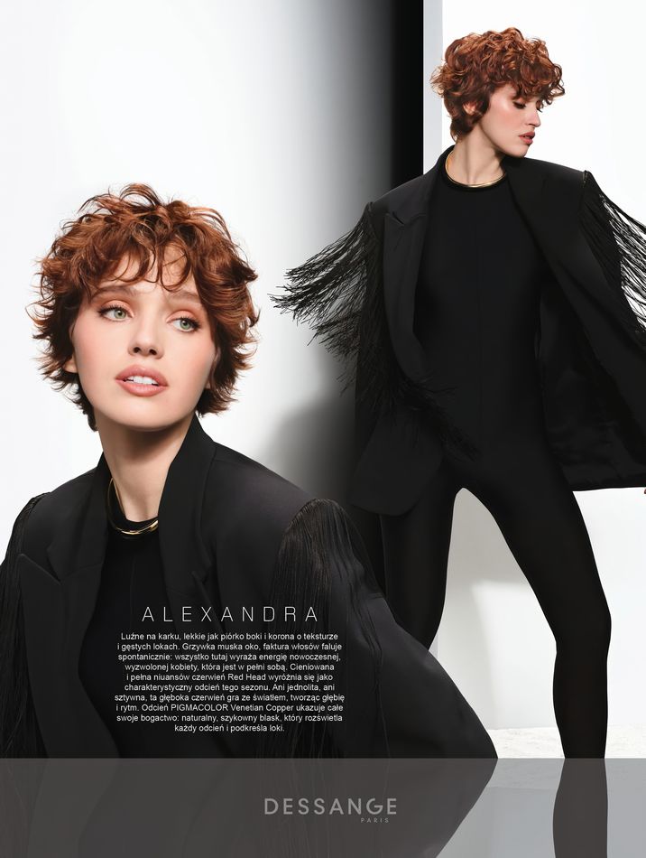 Kolekcja jesień-zima 2025/2026. KOBIETA DESSANGE ROZWINĘŁA SIĘ W ŚWIECIE KONTRASTÓW. MIĘDZY ŚWIATŁEM A CIENIEM, MIĘKKOŚCIĄ A SIŁĄ, KAŻDA POZA STAJE SIĘ POZYCJĄ SIŁY, KAŻDA FRYZURA WYRAZEM TWOJEJ OSOBOWOŚCI.