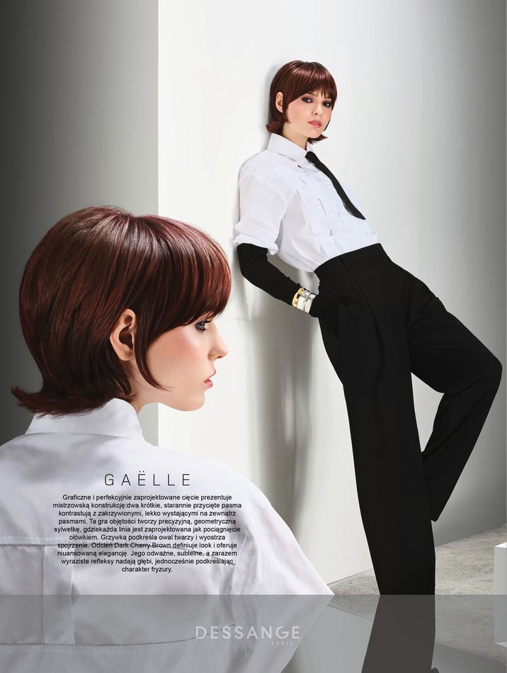 Stworzona na dwóch płaszczyznach, odsłania podwójne spojrzenie na fryzjerstwo, ukazując całe bogactwo i dwoistość wizerunku DESSANGE. Czerń i biel porządkują wizualny wszechświat, uwypuklają grę przeciwieństw, potęgują blask cięć i wyrafinowanie graficznych fryzur. Każdy obraz ukazuje transformację, gest, spojrzenie: czasem surowe, czasem ekstrawaganckie, ale zawsze zdecydowane. Ułożony materiał jest podkreślony, ujawniony przez mistrzowskie połączenia, lustrzane efekty i wyraziste tekstury. Włosy stają się znakiem rozpoznawczym, niesionym przez doskonałą wiedzę. Kolor, żywy i wyrazisty, odzwierciedla ducha czasów, jednocześnie podkreślając kompetencje Maison DESSANGE. Odważne refleksy, dopracowane w najdrobniejszych szczegółach, chwytają światło niczym druga skóra. Graficzna, olśniewająca, magnetyczna: ta kolekcja celebruje wolność bycia bez kompromisów. Wizualny manifest, w którym każda kobieta wyraża siebie w swojej wielości i upomina się o własne piękno, zmieniające się, silne, nieskończenie współczesne.