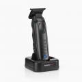 W trymerze FX720E zastosowano ostrze T-blade o głębokości ząbków 2,0 mm, które umożliwia czyste prowadzenie linii, zaznaczanie konturów oraz precyzyjną pracę przy skórze dzięki opcji regulacji do zera. Za stabilną i szybką pracę odpowiada wysokowydajny silnik DC o prędkości 6 800 RPM, generujący 1 074 400 ruchów cięcia na minutę. To przekłada się na skuteczność cięcia nawet przy gęstszych włosach. Trymer pracuje bezprzewodowo dzięki akumulatorowi litowo-jonowemu, oferując do 120 minut pracy na jednym ładowaniu. Ładowanie przez USB-C, wskaźnik poziomu baterii oraz kompaktowa, niskoprofilowa obudowa czynią go praktycznym narzędziem do codziennej pracy w salonie i poza nim.